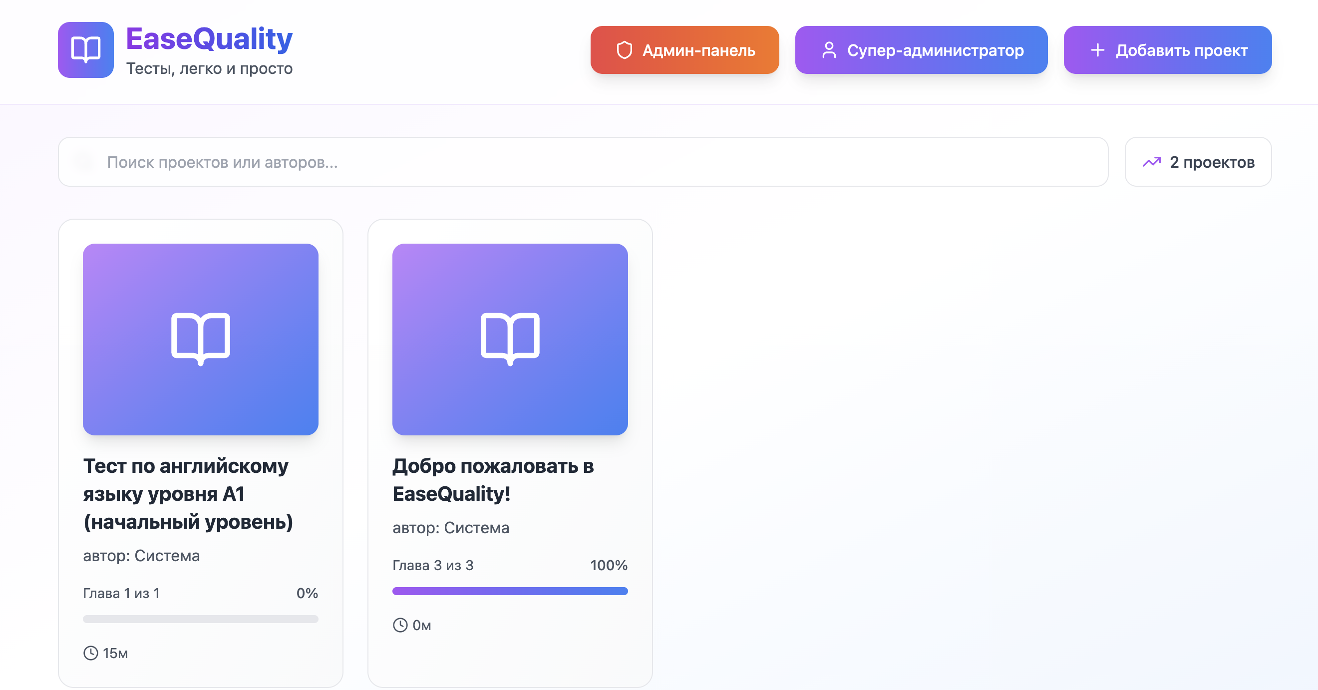 Создание проектов, разделов и страниц. Гибкое построение контента с возможностью пошагового прохождения учебных материалов.